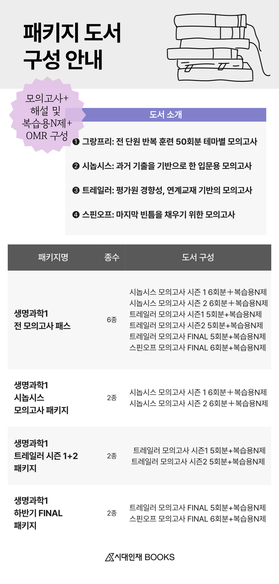 시놉시스. 드라마나 영화의 줄거리 또는 개요를 일컫는 말입니다. 학생들의 수능에 대한 열정과 의지, 여러 질 높은 컨텐츠들의 양적 팽창, 수많은 평가원 신유형들의 누적은 과학탐구 어떤 과목을 선택하든 간에 역대 기출문항에서 소개된 모든 논리와 형식, 유형들을 정리하는 데에 너무 많은 시간을 투자해야 하는 어려움을 빚어내고 있습니다. 방대해진 생명과학Ⅰ 문항 pool의 스케일을 가늠이라도 잡기 위해서 필요한 시간과 실력이 높아진 만큼, 실전 모의고사 학습에 곧바로 들어가는 것이 섣불리 쉽지 않은 선택이 되어 버렸습니다. N제나 기출문항의 반복 + 심화 훈련의 현재 성취도를 중간점검하기 위해선 모의고사를 풀어보아야 하는데, 어떤 과목보다도 타임어택 성격이 강한 과학탐구영역은 현장에서 샤프를 굴려대며 고민할 시간을 쥐어주지 않기에 모의고사 현장 풀이와 N제를 풀 때의 느낌 사이의 간극이 꽤 심하게 벌어졌습니다.