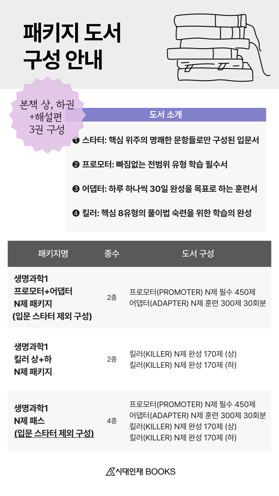 과한 설정이 담긴 문항, 복잡한 사고를 요구하는 문항 없이 개념을 바르게 적용하는 힘을 기르는 가장 깔끔한 500문항으로. 학생이 생명과학Ⅰ의 올바른 토대를 세울 수 있도록 설계하였습니다.